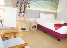 Kami menawarkan kamar junior suite untuk Anda yang mendambakan kamar tidur yang penuh kenyamanan dengan tempat tidur ukuran king untuk pengalaman tidur yang terbaik saat meninggalkan waktu-waktu sibuknya. Anda dapat menggunakan living room, dapur mini, serta fasilitas pembuatan teh dan kopi. Ruangan ini menyediakan kamar mandi yang lengkap dengan air panas dan air dingin. Terdapat juga hiburan dari LED Televisi dengan berbagai saluran luar negeri serta koneksi internet yang dapat diakses di seluruh area hotel. Kamar ini sempurna untuk Anda yang bepergian berdua atau menginap bersama keluarga kecil Anda.